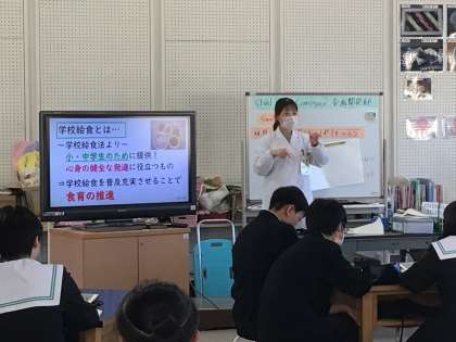 今日、委員会の時間い給食づくりにたずさわっている方(栄養教諭)をお呼びして、給食への思いを聞く時間をつくりました。