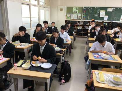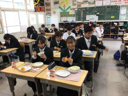 インフルエンザの流行防止のために、今日から給食の隊形が前向きになりました。生徒たちは前向き給食は話がしづらそうで、「班隊形がいいなあ」という声が聞こえてきました。