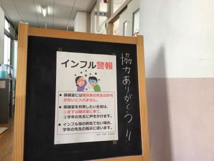 保健室でのインフルエンザの拡大を防ぐために、保健室への入室方法を一部変更しました。先週の火曜日から始めたのですが、生徒が協力してくれるおかげで保健室への来室者が激減し、数日でインフルの罹患者がほとんどいなくなりました。協力してくれた生徒に感謝するばかりです。