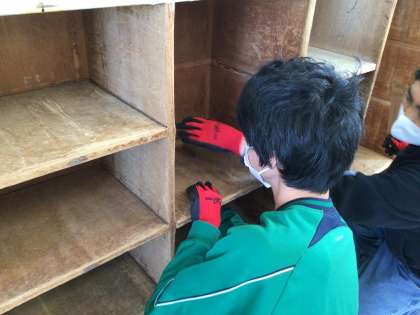 教室のロッカーを4段から3段に作り替える活動「BIGロッカー大作戦」を開催しました。写真は、1年3組の教室で行った作業の様子です。