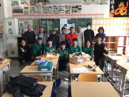 集合写真には、講師としてご教授いただいた「豊田竹とんぼクラブ」の皆さんも一緒に写っています。