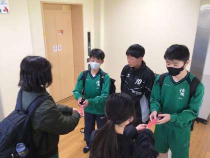 竹上自治区の依頼で、現在竜神中の3年生2名が「竹村ウォッチングライト点検ボランティア」に協力しています。次年度に向けて、このたび2年生への引継ぎの儀式を行いました。活動場所や点検方法を一緒に確認し、1月より本格的に2年生による点検活動が始まります。竜中生はたくさんのボランティアに参加していますが、夜道を明るく照らす「竹村ウォッチングライト」を陰で支えるボランティアの存在もぜひ知っておいてください。
