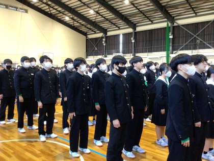 集会の司会をしている2年生が「先輩の伴奏は最後です。感謝の気持ちを込めて歌いましょう。」と声をかけ、特別な思いを込めた校歌となりました。伴奏者のWさん、一年間ありがとう。力強い伴奏で気持ちよく歌えました。