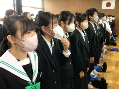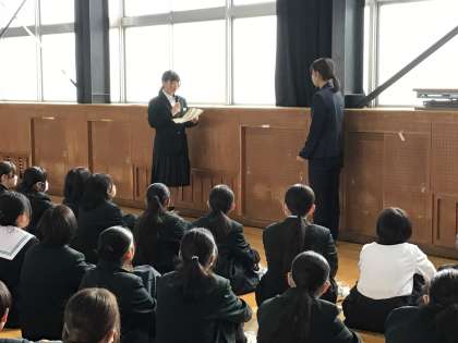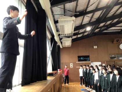 1年生は武道場で学年集会を行いました。