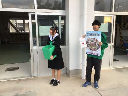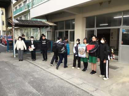 本日の登校時、福祉・美化委員が昇降口に立ち、お年玉募金を呼びかけました。集まったお金は、災害復興や貧困地域への支援にあてられます。明日9日(金)と13日(火)の2日間も同様に実施しますので、多くの生徒が参加してくれることを期待しています。
