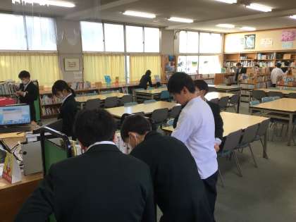 1/23 1年生は有利(図書室の利用) 公開日 2026/01/23 更新日 2026/01/23 生徒の活動 竜神中は1年生のフロアに図書室があります。 朝の会から1時間目にうつるわずか10分の間でも生徒は本を借りにきます。1年生は有利です。だからこそ、1年生のうちに小学校以上に読書が習慣になってくれるとうれしいです。 竜神中では昨年度まで前期のみ朝活動の時間に読書を行っていましたが、今年度から年間を通じた活動に切り替えました。