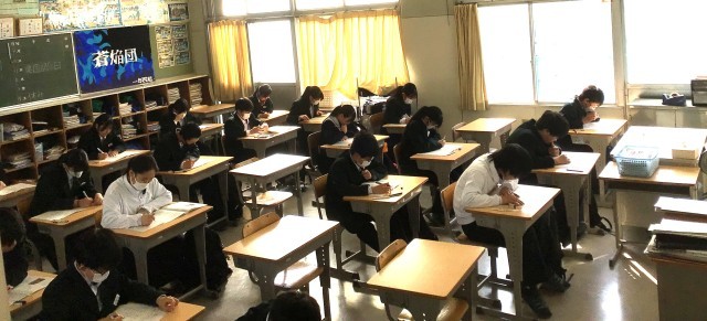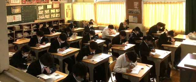 欠席者が数名おりますが、予定通り定期テストを行っています。1日目欠席で本日からがんばって受けている子もいます。