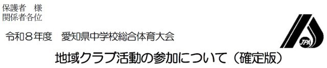 R8 愛知県中学校総合体育大会 地域クラブ活動の参加について