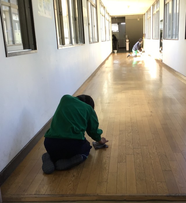はく、ふく、動かす・・・そんな音しか聞こえない3年生の清掃。廊下を通るのが申し訳ないくらい熱心な3年生の清掃。清掃の姿を見るのも今日が最後です。3年生から最後の覚悟を感じました。わずか10分の清掃ですが、今日ほど名残惜しく感じたことは今までありませんでした。3年生、今日まで学び舎を大切にしてくれて本当にありがとう。