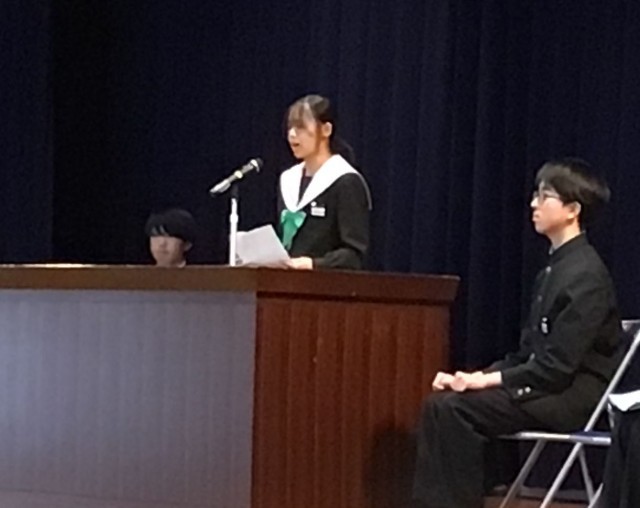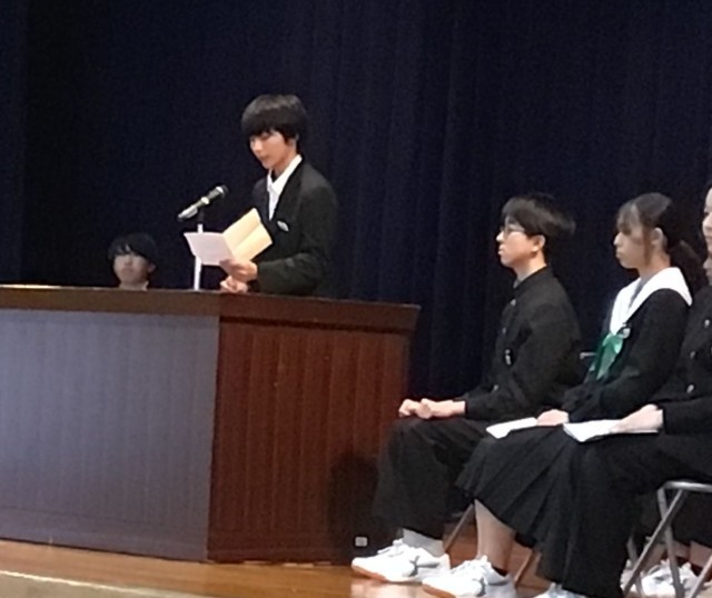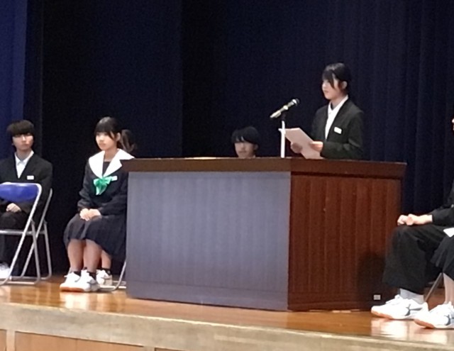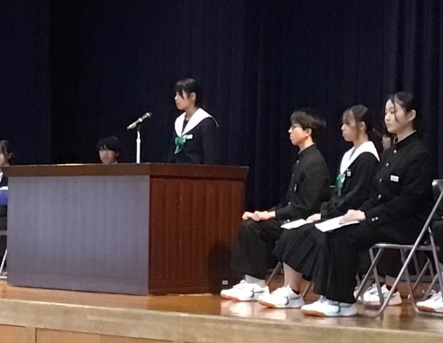 1・2年生合わせて、12名の立候補で、1年生から3名、2年生から4名が選ばれます。12名とも「学校をどうしたいか。」「どうなりたいか。」という思いが伝わってきて、聴いている生徒たちの表情も真剣でした。新しい時代の幕開けを感じました。