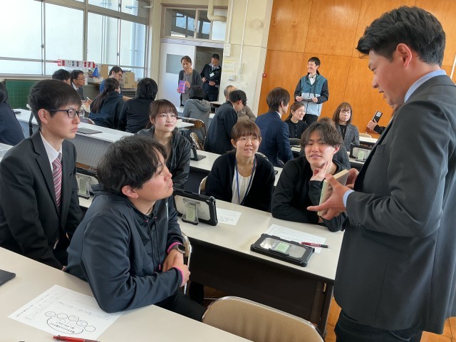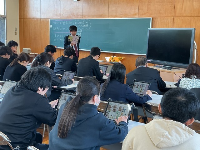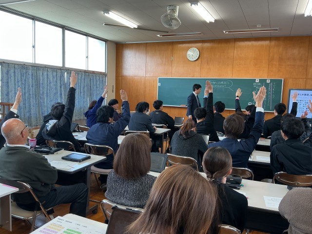 道徳の授業では、【他人の靴を履いてみる】という題材を通して、自分の考えや思いが伝わらない経験を踏まえ、みんなで考えたいことを見つけて授業が行われました。生徒のことばから発問を考え授業を創る技術を学ぶ時間となりました。