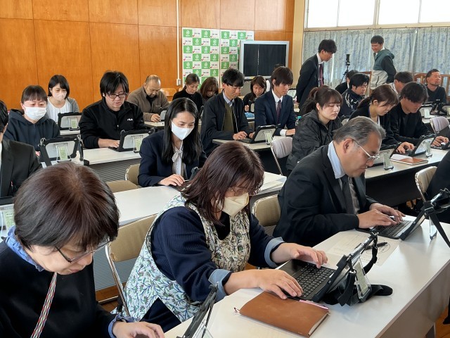 模擬授業のまとめの時間には、今年度から活用される振り返りシート(Excel)を使い、自分の考えをまとめ、その後の協議会に生かしました。