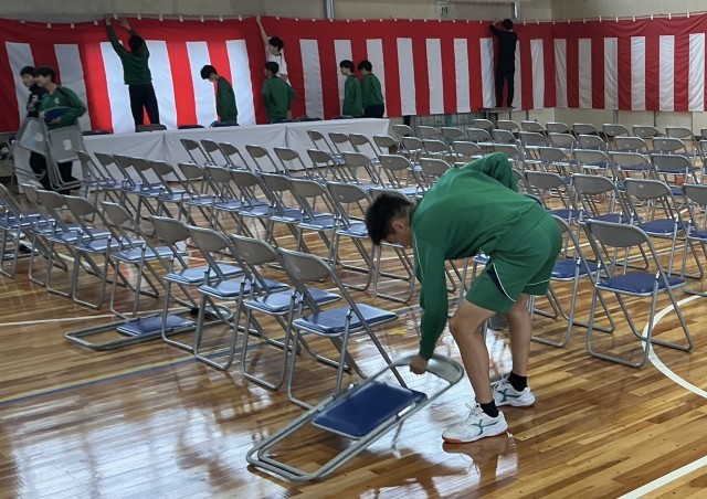 毎年度、教科書配布がたいへんなのですが、体育館の準備を終えた生徒が気前よく手伝ってくれました。