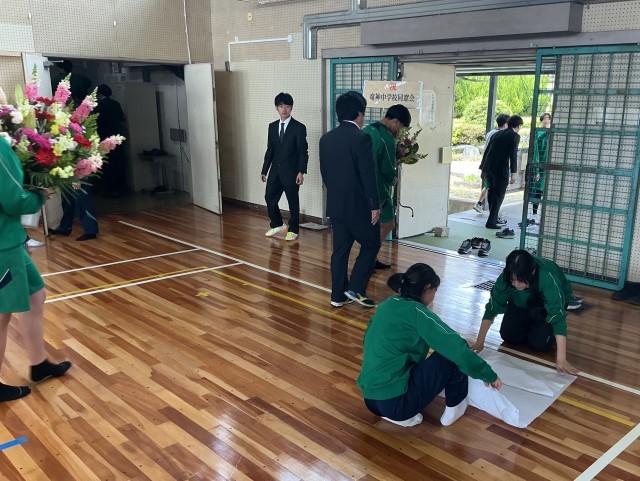 入学式を終えて、下校前に3年生が会場の片づけをしてくれました。