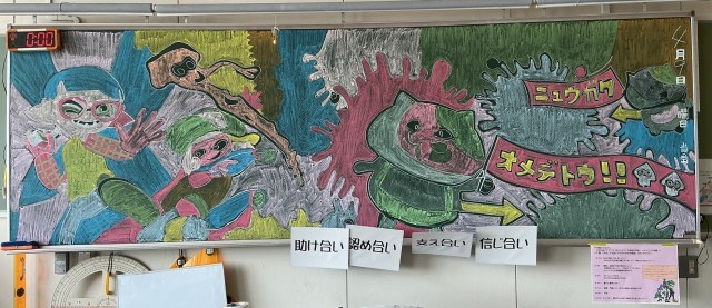 新1年生の生徒との出会いに胸を膨らませながら、先生たちは黒板に思いを込めました。