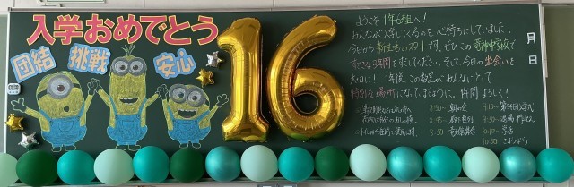 イラストやメッセージに一年間の願いをこめて学級開きを行いました。一年間よろしくお願いします。