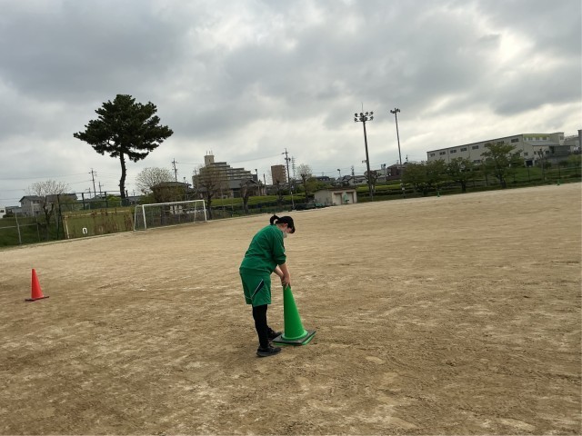 今朝、1年生の先生が闘竜祭練習の準備のためグラウンドにラインを引いていたところ、早く登校した3年生の数名から「先生、手伝いましょうか?」との嬉しい声が。一人では大変なコーンを運ぶ作業を手伝ってくれました。3年生生徒の優しい声かけと行動に心が温まりました。
