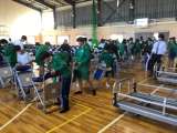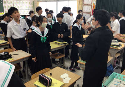 2年自然教室・進路説明会の会場片付けを2年1組と2組の生徒が行いました。嬉々と...