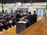 1年生は武道場で学年集会を行いました。 流れは次のとおりです。 (1)3月の学...