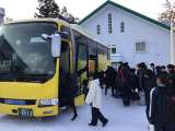 バスに戻った後、昼食を食べました。 今から出発をし、学校に帰ります。