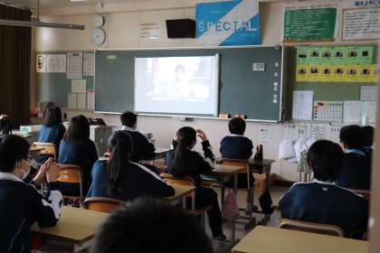 6時間目に、新入生歓迎会の動画を各教室で鑑賞しました。1年生たちの教室では多くの笑顔があり、楽しい動画を通して猿投中学校のことについて知りました。