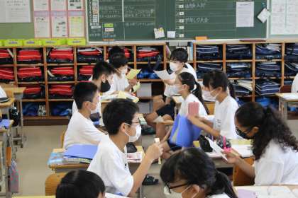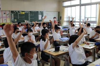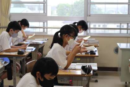 1年生の社会科の授業では、「排他的経済水域」をテーマにした話し合いが展開されました。生徒たちが本テーマに必要な知識の習得から、どのように主体的・対話的な学びにつなげるかについて工夫を凝らしています。また、改めて授業と家庭学習の連携(つながり)の大切さについても考えさせられるものでした。生徒たちは本テーマに関する知識・理解はすすんでいる様子がその姿から伝わってきました。