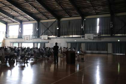 5・6時間目に、3年生と保護者対象に高校説明会がありました。