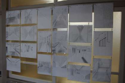 今週は保護者会週間です。合わせて校舎内は、色とりどりの作品でいっぱいです。美術科の授業で制作した作品を各学年廊下に展示しています。1年生は、色と形で思いを伝える「ペーパーフラワーのデザイン」に取り組みました。2年生は透視図法を使った「学校の風景画」に取り組みました。3年生は「躍動感のある人物像」に取り組みました。ハピスマでは、秋を感じさせる葉にフォーカスを当てたスケッチと粘土を使って皿づくりを行いました。