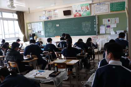 1月7日(金)は、冬休み明け初日の登校日。2・3時間目に、各学級で書き初め大会が実施されました。