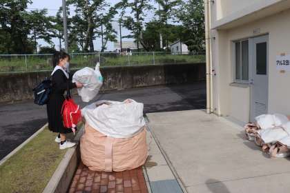 ただいま資源回収期間です。アルミ缶・牛乳パック・新聞紙です。ご協力よろしくお願いいたします。