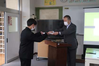 生徒総会の前に、各委員会委員長、各学級級長・代議員・書記の認証式がありました。