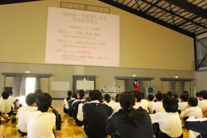 6月10日(金)の5・6時間目に、自転車の安全な乗り方への意識を高めるために、1年生対象に自転車安全教室を行いました。