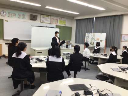 10月17日月曜日の3年生の社会科の授業で、生徒が裁判官や検察官、弁護人、裁判員などの役を演じながら学習しました。