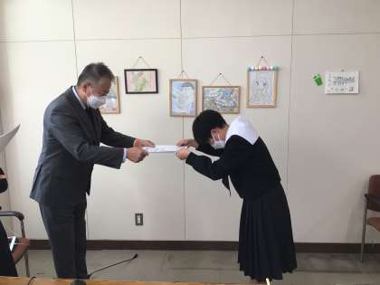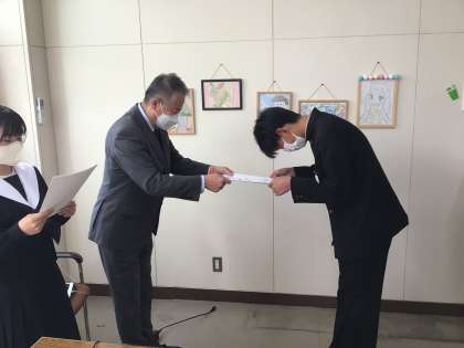 学校保健委員会後に、各委員会委員長と学年企画委員に認証式が行われました。