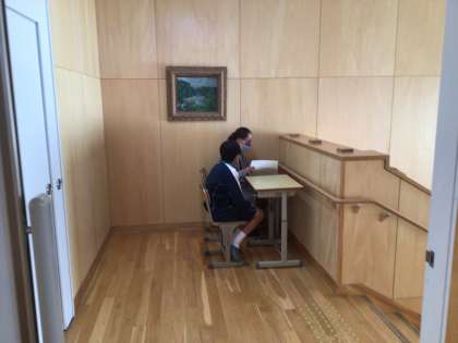 担任の先生と生徒との相談活動の様子です。本校では、定期テストのテスト期間中に実施しています。事前に生活アンケートを行い、その内容に関することやテストに向けての学習方法などについて話しています。3年生は、明日から後期中間テストが始まります。