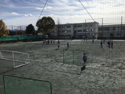 1年生の保健体育科の授業で「サッカー」をしています。今日は、昨日と比べてとても暖かくなり、汗をかいている生徒もいました。