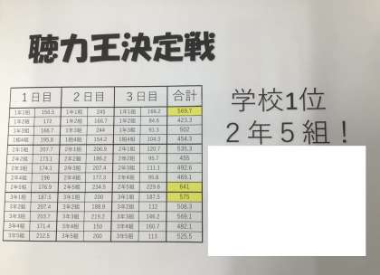 学習用タブレットを活用して行いました。結果は、全校で2年5組が1位でした。1年生は1組、3年生は1組が学年トップとなりました。
