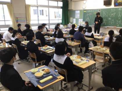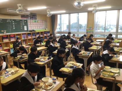 今週は給食委員会が担当です。給食の配膳を清潔にできるだけ早くする取り組みをしています。各クラス、工夫しながら協力しています。
