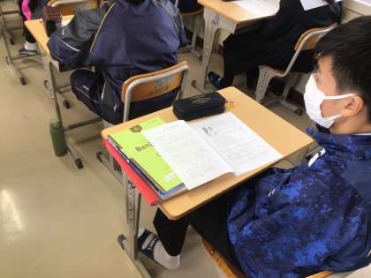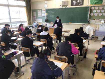 3年生の英語科の授業の様子です。昨日実施された「学習診断テスト」の問題を使って、復習をしています。理科や数学科など、他の教科においても、復習をしています。来月の中旬には、入試が始まる予定です。