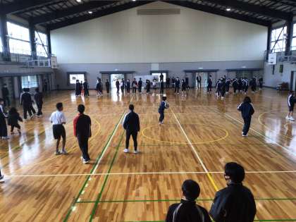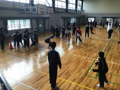 他学年との交流を目的とした「球技大会」が始まりました。短時間での交流を重ねていく予定です。今日は、1年2組、2年5組、3年1組の3クラスが交流しました。