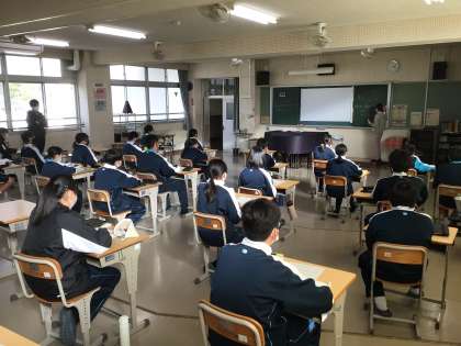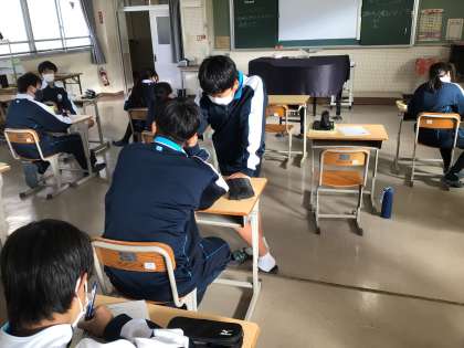 1年生の授業の様子です。シューベルトの「魔王」を聞いて、表現の工夫について学習しています。曲を聞いて、気づいたり感じたことを互いに伝え合いながら、学びを深めていました。