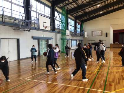 1年生の保健体育科の授業の様子です。シュートを練習していました。