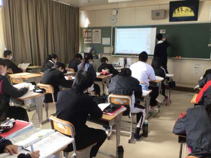 3年生の英語科の授業の様子です。明日から冬休みとなりますが、そんなことを感じさせないほどの緊張感がありました。