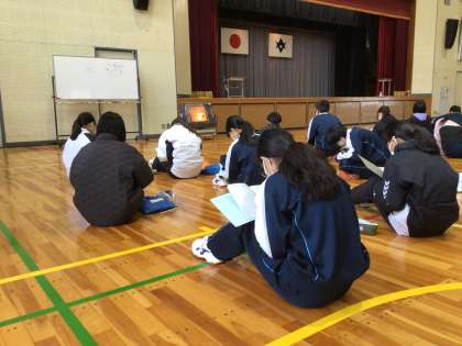 2年生の学年集会の様子です。自然教室のしおりを使って、3日間の日程の確認をしていました。生徒は、必要なことをメモしながら参加していました。今週の日曜日が楽しみですね。