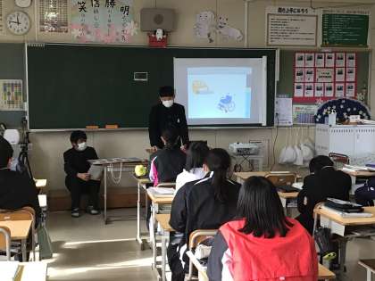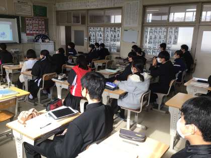 2年生の英語科の授業の様子です。英語でプレゼンテーションをしています。話すこと、聞くことの両方が大切ですね。