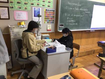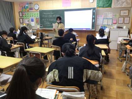 1年生の英語科の授業の様子です。英語で道案内をしています。豊田市の主な施設までの案内に挑戦していました。ALTのパウラ先生と一緒に授業を進めています。