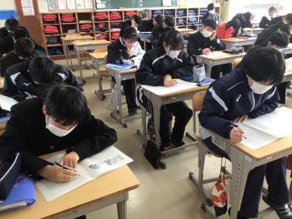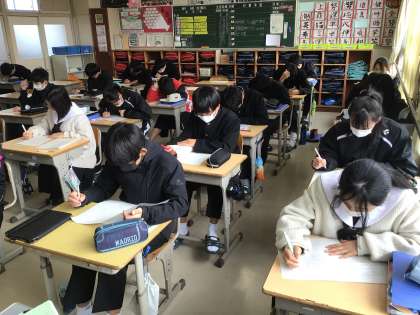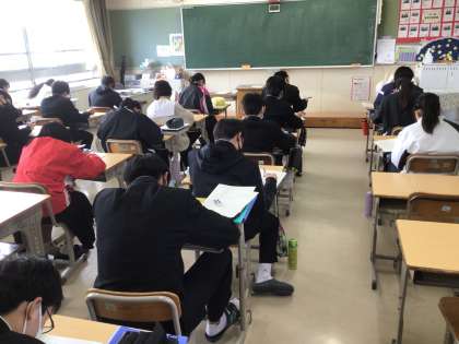 1,2年生は、明日は「学習診断テスト」(5教科)、来週水曜日から「学年末テスト」(9教科)が予定されています。