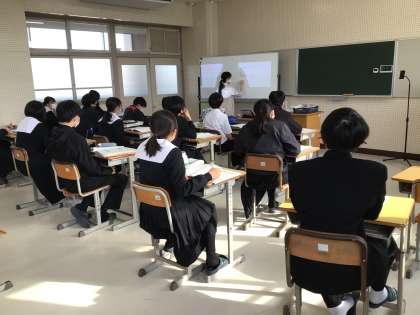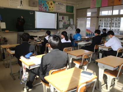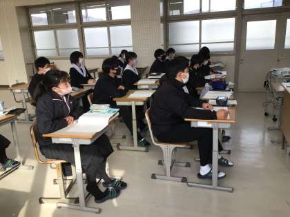 2年生の英語科の授業の様子です。2年生は、少人数で指導しています。今日は昨日実施した「学習診断テスト」の解説をしていました。