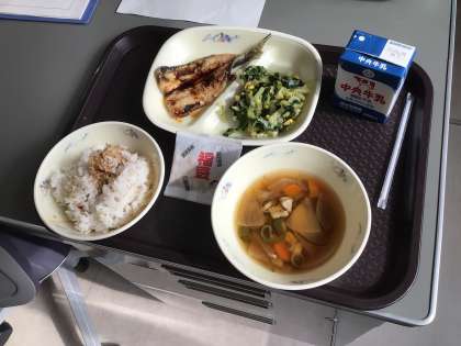 今日の給食は、節分献立です。いわしと節分の豆があります。おいしくいただきました。