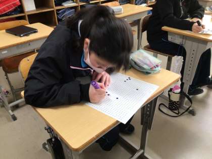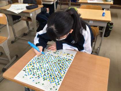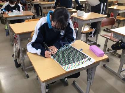 1,2年生が協力して「卒業生を送る会」の準備をしています。モザイクアートの準備の様子です。